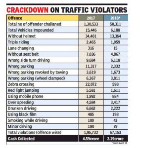 There has been surge in the number of offenders, while 1,30,533 persons were fined in 2017, the number of traffic offenders in Jaunuary-April quarter this year have been 50,311.
